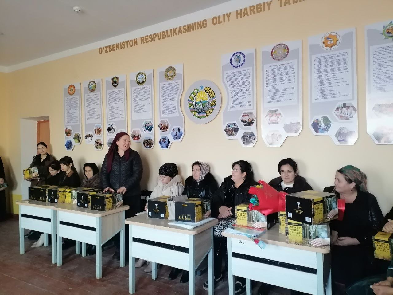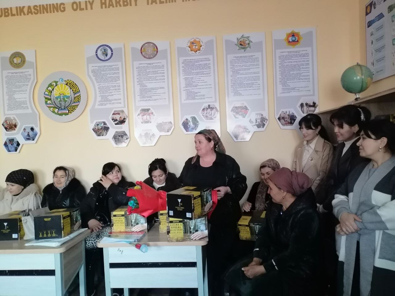 Aziz ustozlarimiz va opa-singillarimiz iliq so‘zlar bilan qutlandi, va ularni esdalik sovg‘alari bilan quvontirishdi.